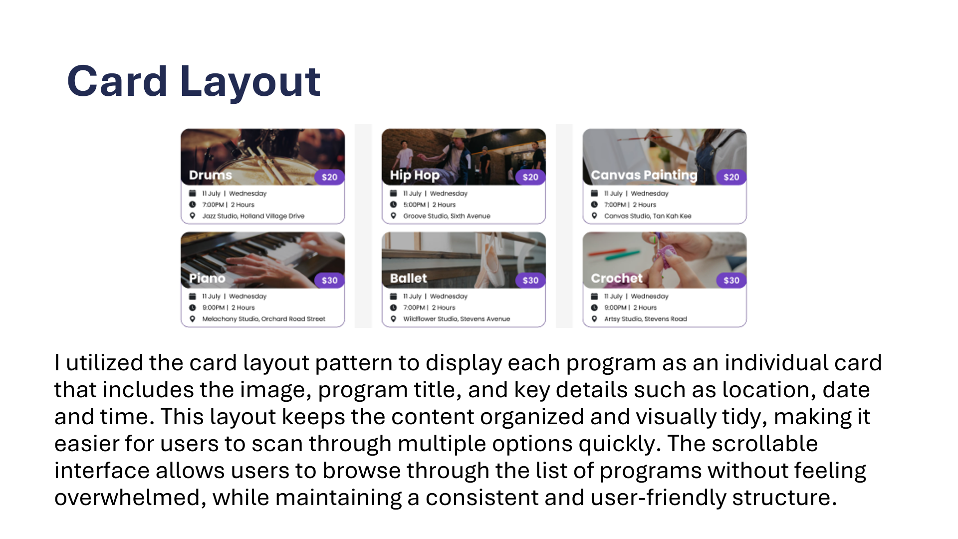 This app is designed for an enrichment centre offering art, music, and dance classes. It provides a convenient platform for users to explore programs, register for classes, and manage their schedules.