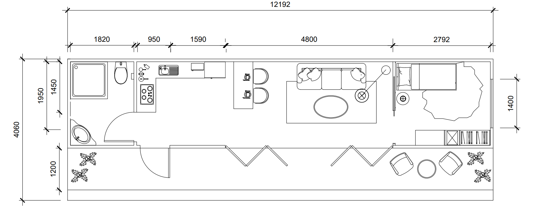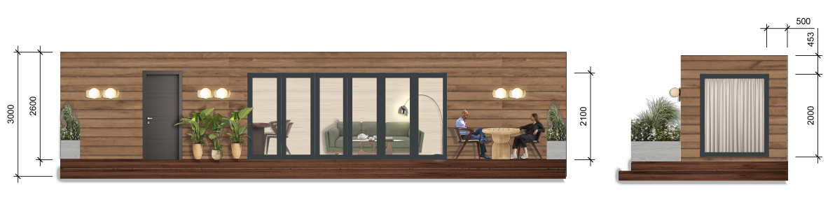 Front & Side Elevation of Accommodation Pod