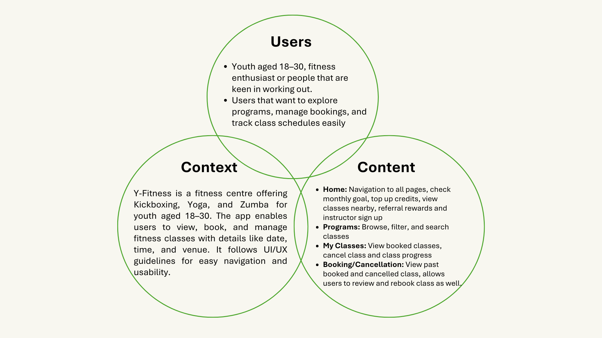 This app is designed for a Fitness Centre, Y-Fitness, enabling booking of Yoga, Kickboxing and Zumba class.